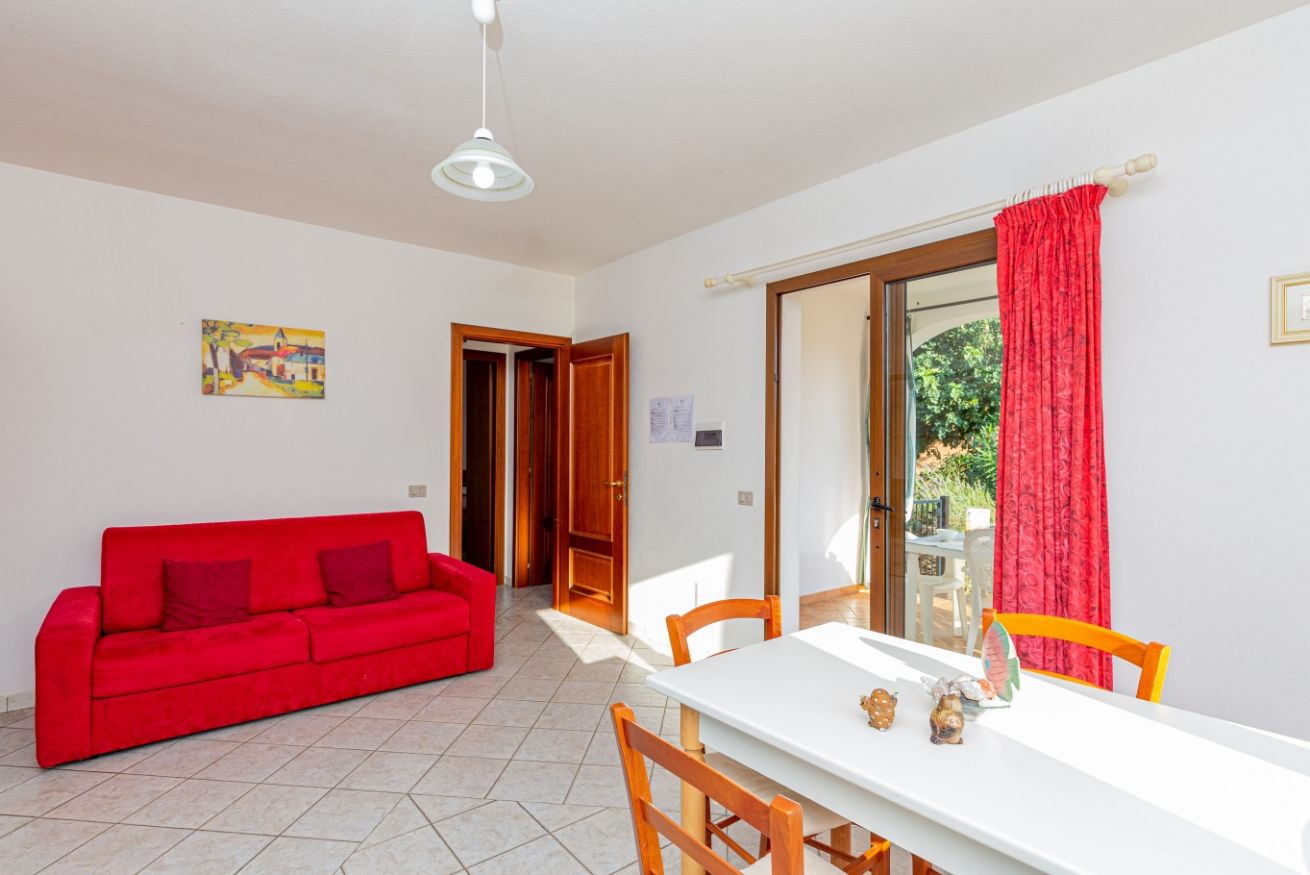 Appartamento con ampio giardino privato, composto da soggiorno con angolo cottura attrezzato, un divano letto matrimoniale, servizio privato con box doccia, lavatrice, una veranda attrezzata con tavolo e sedie da giardino, un piccolo barbecue, aria condizionata in entrambe le camere, wifi gratuito. Distanza dal centro 500 m, dalla spiaggia La Cinta 1.500 m. Consegna appartamento dalle ore 17:00 alle 23:59